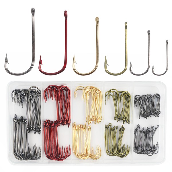 • 【Diversified Selection】 Reasonably set the sizes of 6 types of fish hooks, including 8 #, 6 #, 4#, 2 #, 1 # and 1/0 , to facilitate catching fish of different sizes. Meanwhile, this combination also offers a wide range of color choices, including four colors: tea, gold, red, and black, totaling 150 pieces.