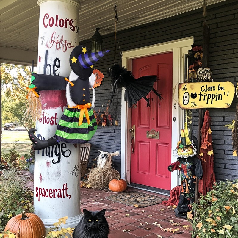 - 🎃【Easy to Install】The witch decor wrists, ankles and hats each have 2 straps adjustable with enough length for you to hang the Halloween witch decor in any place of different size and shape. You can hang tree-climbing witches on tree, yard, garden, porch, door, outdoor, etc. Just fulling with some papers or old clothes if you want to make the hat drum up.