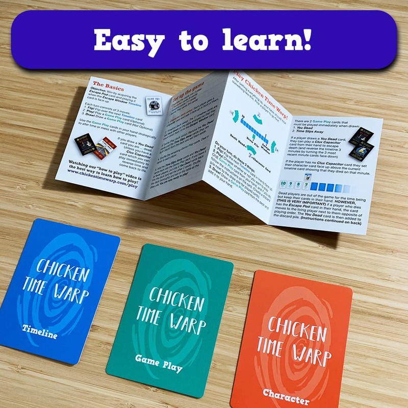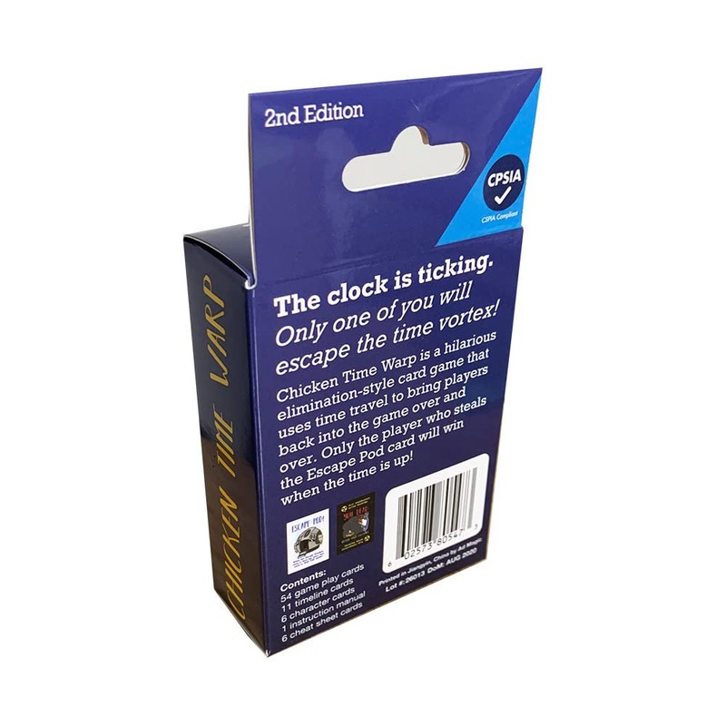 - Chicken Time Warp is a kooky, fast-paced, elimination-style game that uses time travel to bring eliminated players back into the game over and over. Only the player who steals the Escape Pod card will win when the time is up!