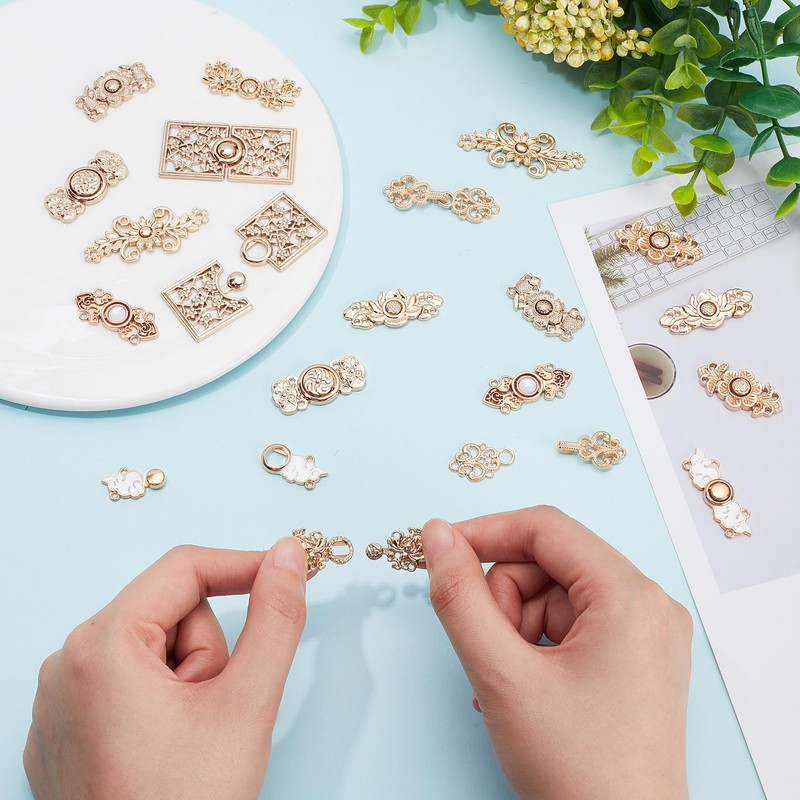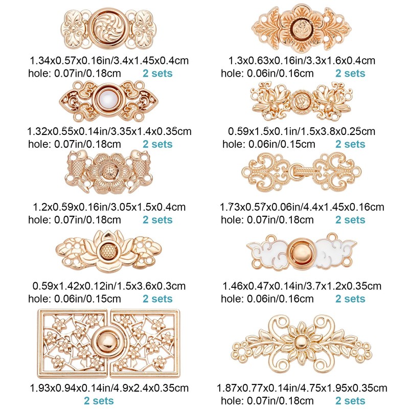 - WAIST TIGHTENER CLIP: 20 sets of 10 style trouser waist buttons, their shapes include (fish, rectangle, flower, sunflower, cloud), light gold, different styles of buttons can match your different clothes and pants.
