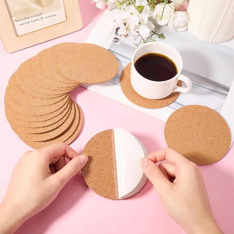 Cork Material: Self adhesive coasters are made of high quality cork material, light weight, strong and reliable, not easy to damage and wear, non slip, support long term use