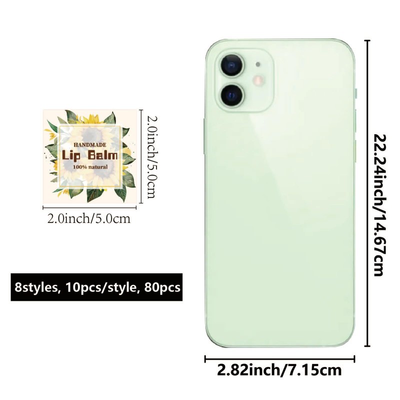 - Lip Balm Labels Size: Square custom lip balm diy label sticker about 1.96 x 1.96 inch(5 x 5cm), 8 styles, 10pcs/style, 80pcs in total