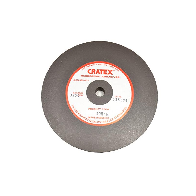 DO NOT USE PICTURES FOR ORDERING, PLEASE READ DESCRIPTION. Pictures are for illustration purposes only.Sizes shown are diameter, thickness, arbor hole size.Grit Textures: Each Cratex size and shape is made in four standard grit textures or compositions which differ in accordance with the mesh size of the abrasive grain used. Supplied with a 1/4" hole.Coarse (Green) Medium (Dark Brown) Fine (Reddish Brown) and Extra Fine (Grey Green). Diameters from 1-1/2" to 6". Best performance speed may be well below the maximum safe speed of 7,000 RPM.Cratex Large Wheels have found wide application for removing rust, heat marks, tarnish, excess solder, scratches, corrosion...blending in and polishing welded seams after rough grinding...polishing bearing surfaces and raceways...removing burrs and breaking edges...smoothing and polishing castings and punched or sheared pieces...wet sanding of gem castings...wet sanding of gem stones...trimming plastic articles...smoothing glass edges...cleaning before welding or soldering...and for countless other deburring, smoothing, and polishing operations.