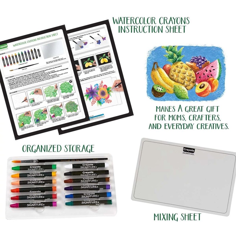 - CRAYOLA SIGNATURE PREMIUM WATERCOLOR CRAYONS: This Watercolor crayons painting set includes 12 premium colors and 1 paintbrush.