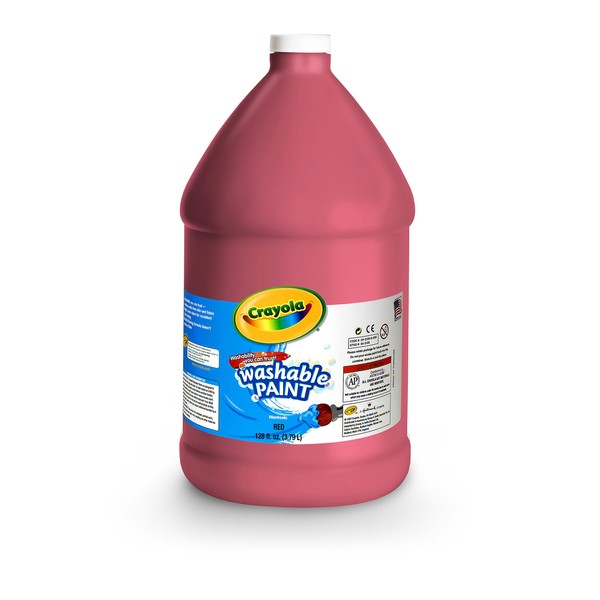 Crayola Washable Paint 128oz Red. Premium washable quality. Easily washes from skin and most washable clothing.
