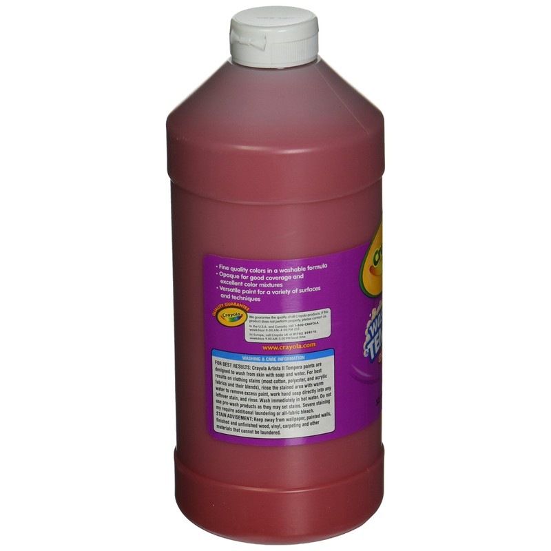 Crayola Washable Tempera Paint in red is ideal for school projects, art classes, and household crafting. This washable paint is easily cleaned from hands with soap and water, and stains can be removed from most clothing with proper wash and care. Ideal for use on a variety of surfaces, our red paint provides opaque coverage, and works well for color mixtures. Parents can rest easy knowing that this is a safe and nontoxic paint for kids.