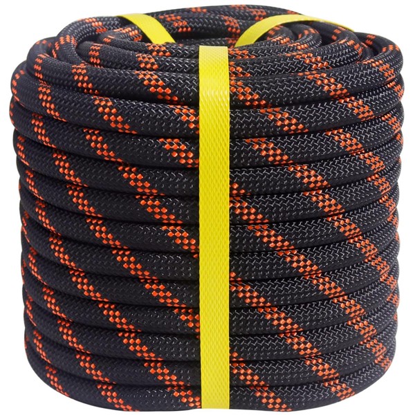 CRAYZA Double Braided Arborist Rigging Rope (1/2 in x 100 ft) Strong Polyester Rope 48 Strands for Tree Work Climbing Pulling Swing Sailing, Black/Orange