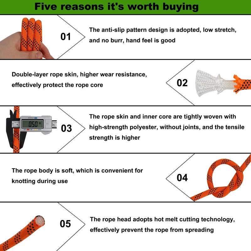- The core of the arborist rope is made of 48 strands of high-strength polyester thread with excellent tensile strength.