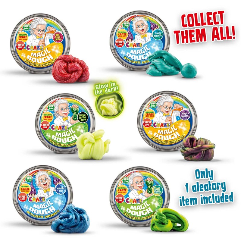 - The Craze Magic Double Expert Professor, for all young kneading experts. The clay is available in 6 special effect variants: Metallic Blue, Glow-in-the-Dark, Magic Galaxy or Green Colour Change, Red Lava & Ocean Metallic. Pre-selection not possible. Let yourself be surprised and collect all variants!