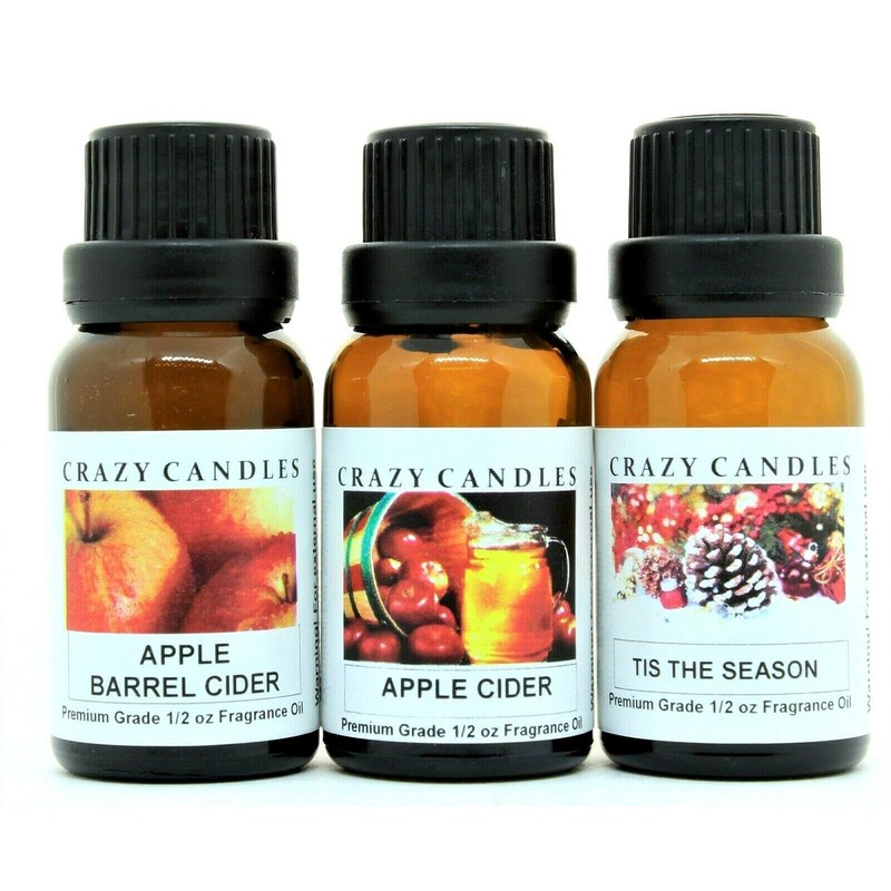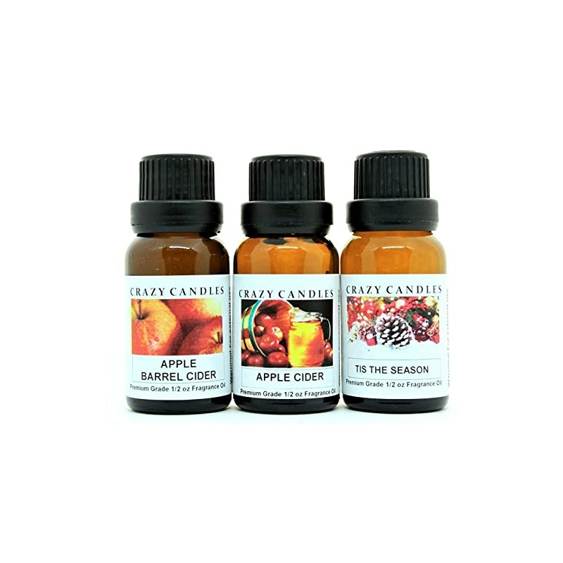 Crazy Candles 3 Bottles Set, 1 Apple Barrel Cider, 1 Apple Cider, 1 Tis The Season 1/2 Fl Oz Each (15ml) Premium Grade Scented Fragrance Oils