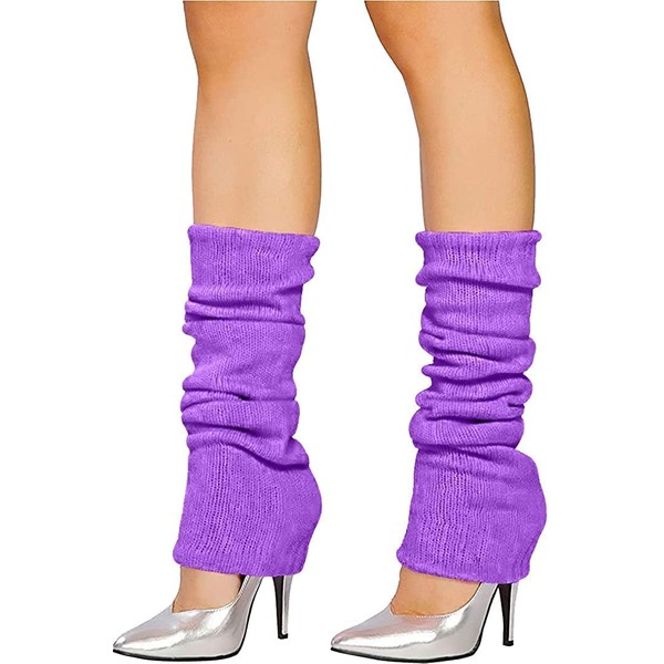 Crazy Chick Angies Fashion Luxurious Ladies 80's Dance Plain Ribbed Leg Warmers Neon Leg warmers in Hot Pink 12 Colours (PURPLE)