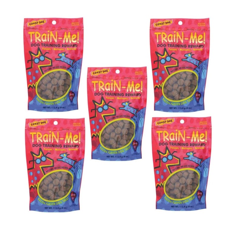 These soft Crazy Dog Train-Me! Training Reward Dog Treats available in bacon flavor are great for training.