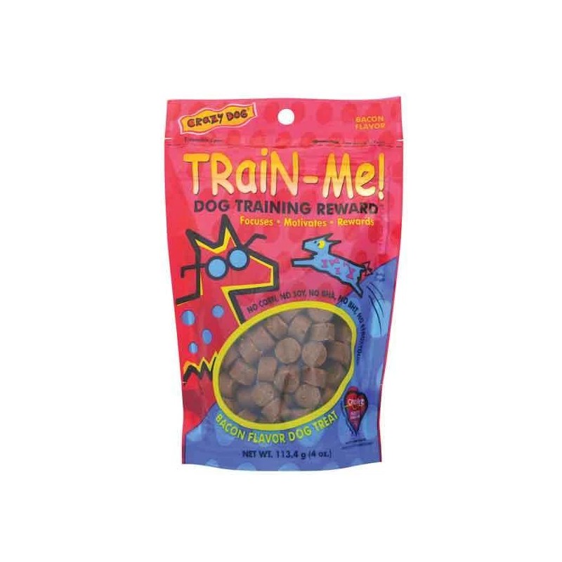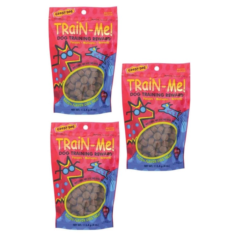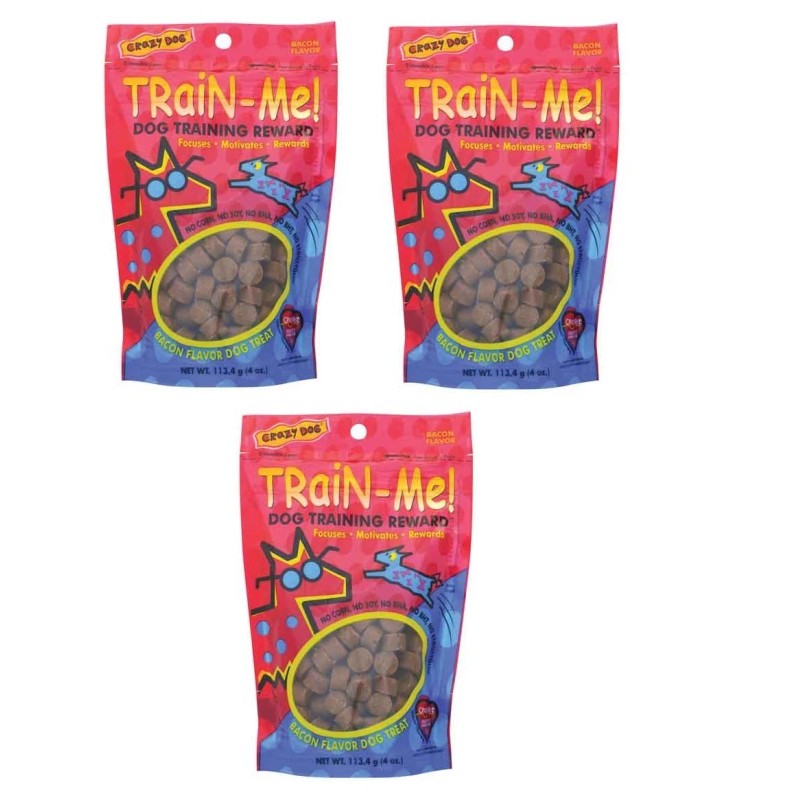 These soft Crazy Dog Train-Me! Training Reward Dog Treats available in bacon flavor are great for training.