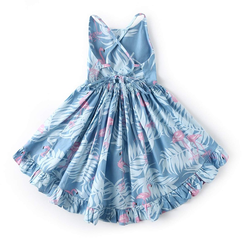 Vestido estampado de algodón para niñas, azul 18 – 24 m