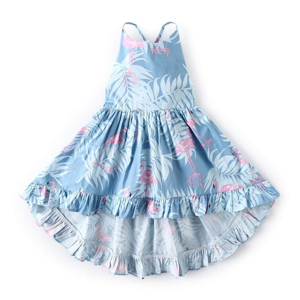 CRAZY GOTEND Vestido de algodón con Estampado de Camisola para niñas, Azul, 3-4 Años