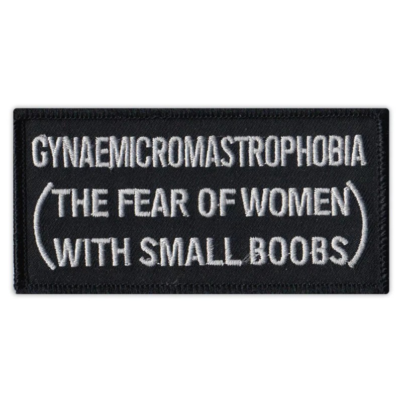 Crazy Sticker Guy Motorcycle Jacket Embroidered Patch - Fear of Women With Small Boobs - Funny