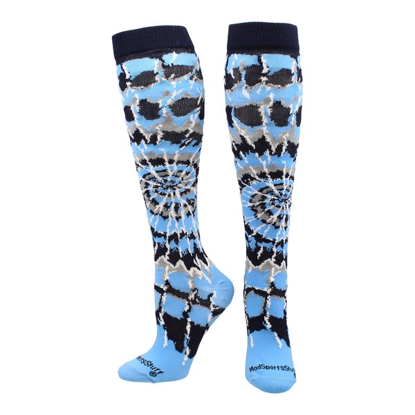 Crazy Tie Dye Socks Over the Calf (Navy/Columbia Blue/White, Small)
