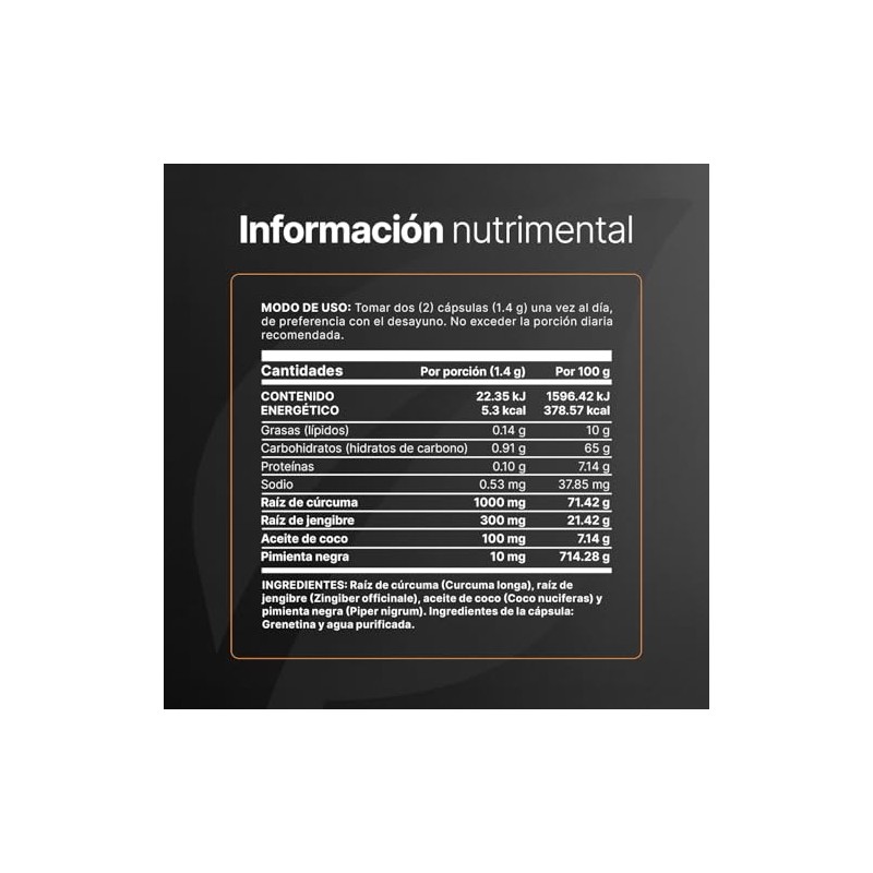 Crcuma Jengibre 90 Cpsulas 1400 mg por porcin. Adicionado con Aceite de Coco. Ingredientes naturales. Turmeric Ginger B Life