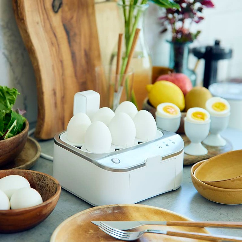 CRDLB0001 Egg Steamer, Boiled Egg Maker, Boiled Egg Machine, Voice Announcement of Finished Production, White