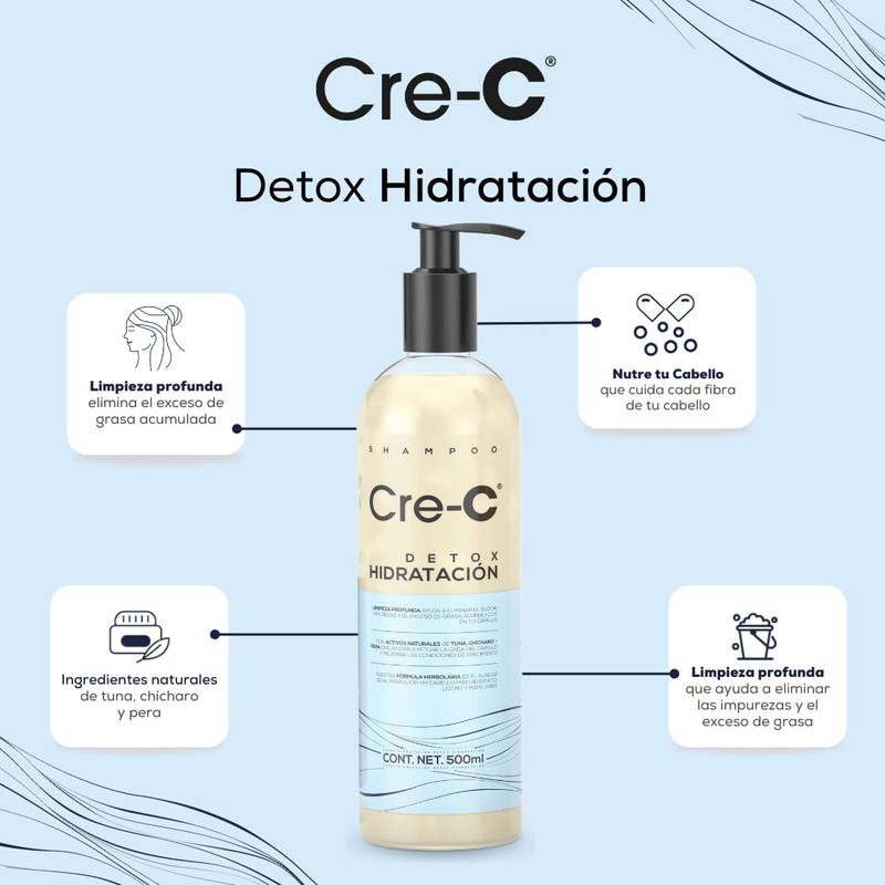 - Confía en tu cabello, Confía en Cre-C ¡Descubre la fusión perfecta entre limpieza profunda y nutrición con nuestro nuevo Shampoo Cre-C Detox Hidratación 500ml!