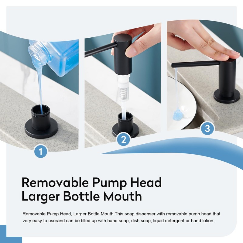 - 【Versatile Use】 - The classic soap dispenser fits easily into your kitchen sink or countertop (granite, stainless steel, wood), caravan, bar, etc. sink and can hold hand soap, dish soap, detergent or hand cream,Gives you a neat and tidy worktop.