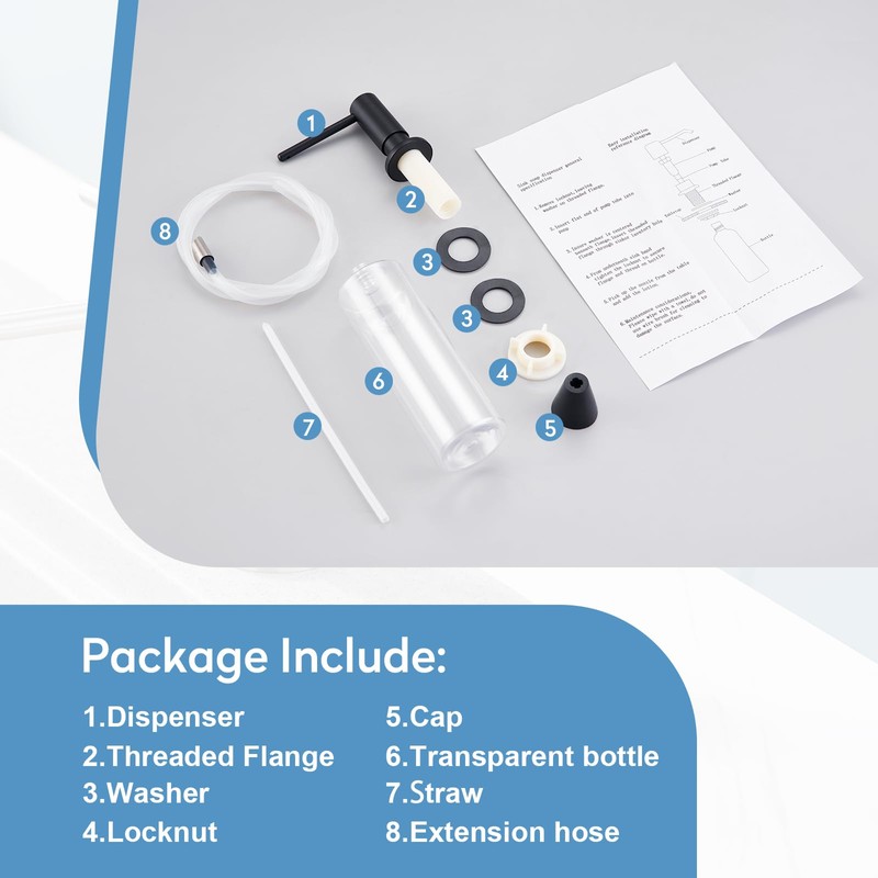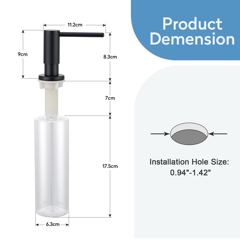 - 【No Frequent Refill】 - Life saver if you hate constantly refilling your sink pump with dish soap! CREA's built-in sink soap dispenser comes with a 17 oz / 500 ml large capacity bottle and a 39" Sink Soap Dispenser Extended Hose Kit that attaches the hose directly to a full bottle of large capacity dish soap. You can choose which you want.