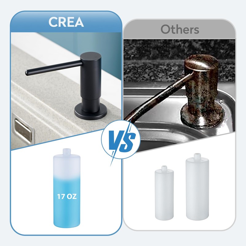- 【Optimization Design】 - Do you need lots of attention on adding soap to your soap dispenser every week? CREA kitchen sink soap dispenser includes a 304 stainless steel pump head, We also present a 17oz lead free PE plastic bottle and an extension tube made from corrosion resistant food grade silicone for your convenience.