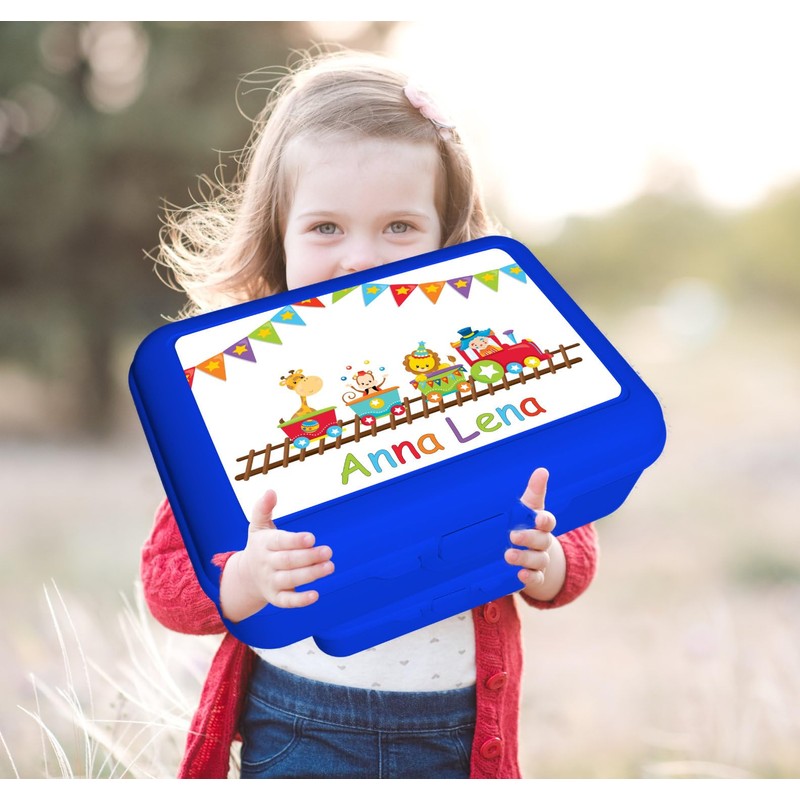 CreaDesign, Children's lunch box, lunch box, blue with compartments insert, ideal for nursery, nursery and school, train, 13.9 x 19 x 7 cm, volume 1 litre
