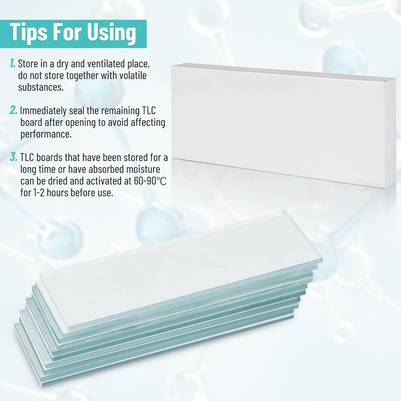 - Specification : The size of the thin-layer chromatography plate is 25mm x 75mm, with 80 pieces per box and a weight of 0.8kg