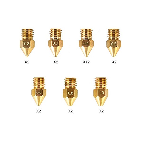 - ??Great ValueFull size MK8 nozzles, a set of 24, are marked on the outer surface, so you can easily determine the nozzle specifications.Each side of the nozzle is cut by a diamond knife, so its contact surface is flatter.
