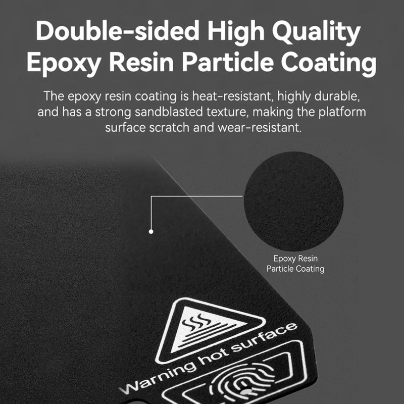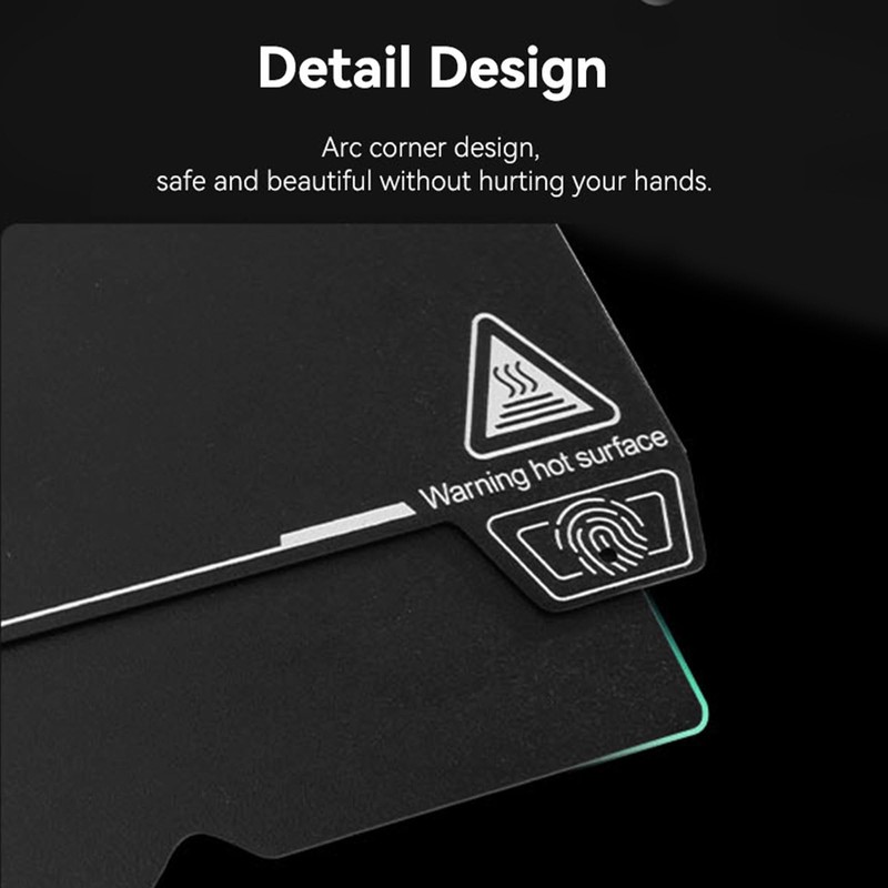 - ⭐Strong adhesion: The black textured PEl has high adhesion to prevent the model from warping when printing, whether at high or low temperatures.