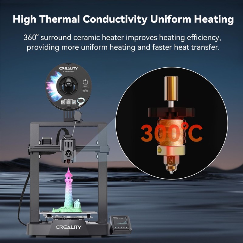 - 【High Flow Printing】Enlarged hotend nozzle chamber with a maximum flow rate of 32mm3/s, supports high speed printing of up to 500mm/s. Creality Ender 3 V3 KE hotend has been upgraded compared to ordinary hotend. The extremely thin wall thickness of the heat break provides excellent heat insulation performance. Smaller roughness on the inner wall of the nozzle results in smoother material discharge and better printing results