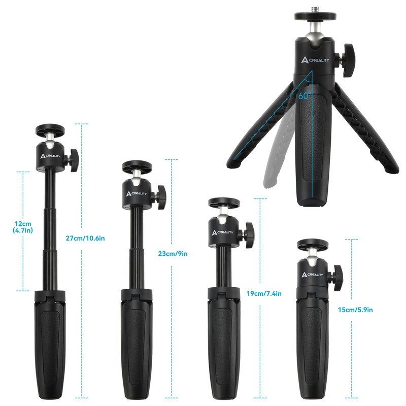 - 【2-in-1, Multi-function】 Creality handle tripod is a very versatile 3d scanner accessory; It is a combination of extension pole and tripod all in one small package; The max extension length of the pole is 4.7 inch.