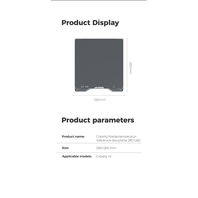 Creality Hi Low-Temp 3D Printer Platform - 280x265mm, Cold Printing Build Plate, High Adhesion, No Heating Needed, Easy Demold, Double-Sided