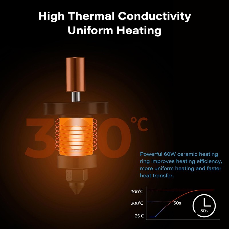 - 【Faster Heat Transfer and Higher Temperature Resistance】Employs a powerful 60W ceramic heating ring for rapid and uniform heating, enabling higher temperature resistance and quicker printing speeds.