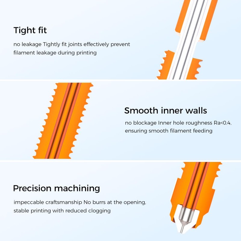 - Bloqueo 0, sin fugas: pared interior lisa de cerámica K2 Plus, alimentación suave. Sin rebabas en el orificio, impresión estable y no es fácil de enchufar. Las juntas están bien ajustadas, evitando eficazmente fugas de impresión