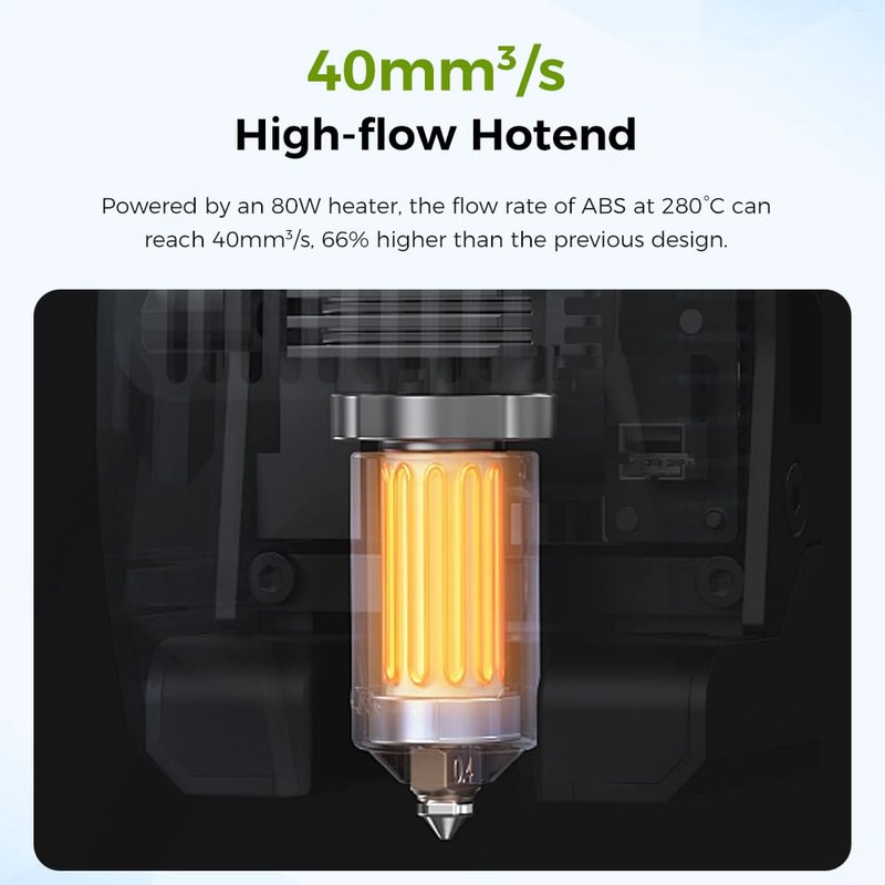 - 40 mm3/s de alto flujo: alimentado por un calentador de 80 W, el caudal del bloque de calefacción de cerámica K2 Plus Combo de ABS a 280 °C puede alcanzar los 40 mm3/s, un 66 % más alto que el diseño anterior. Y el calentador de cerámica envolvente de 360° mejora la eficiencia de calefacción, un calentamiento más uniforme y una transferencia de calor más rápida