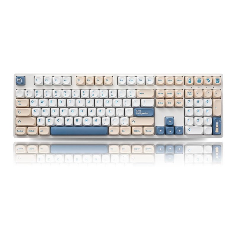 - Custom Keycaps: Thick PBT keycaps are thick and have a high quality sound texture. Cream and blue keycaps are ideal for customizing your keyboard