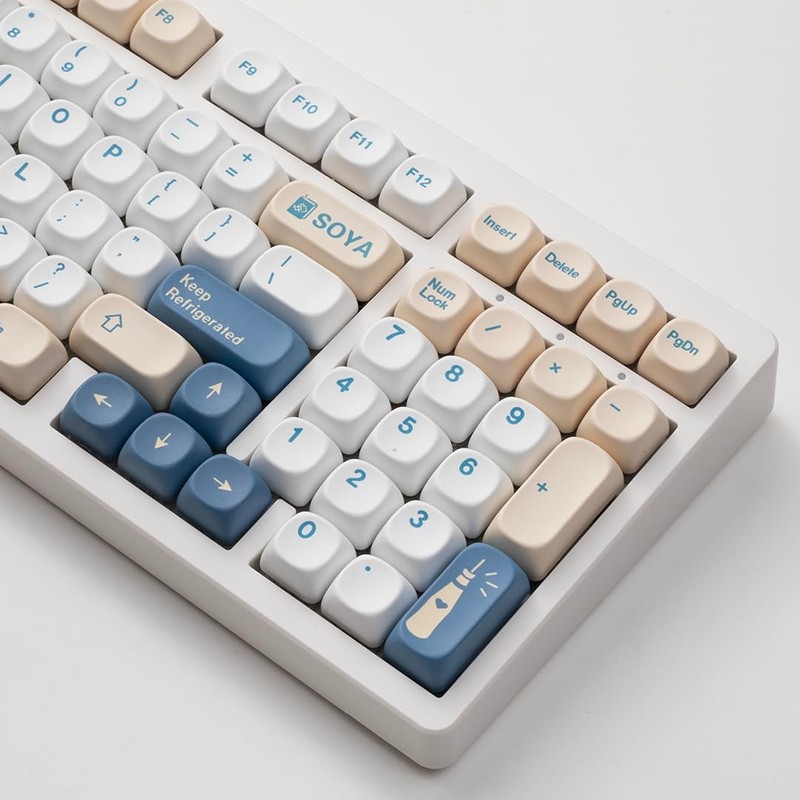 Cream and Blue White MOA Profile Keycap, Csutom PBT Keycap Set for ANSI US Layout Mechanical Keyboard, Dye Sublimation Durable Thick Key Cap 144 Keys