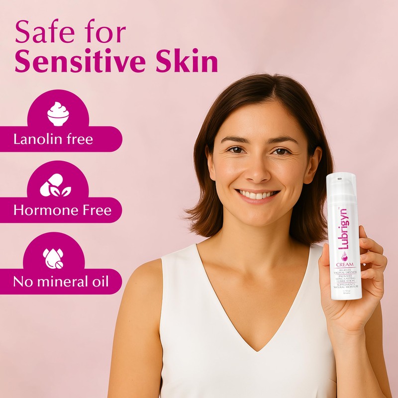 Lubrigyn cream, with airless pump, is a special formula that can be used to supplement a woman’s natural lubrication and moisture. It deeply moisturizes the delicate skin enhancing the comfort and pleasure of intercourse and intimate sexual activity. Odorless, this rich, silky cream is recommended by doctors for women of all ages who are experiencing dryness.