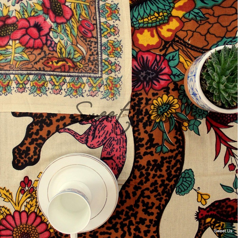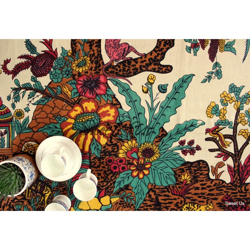 This tapestry tablecloth as been handmade making each tapestry tablecloth unique, one of a kind and charmingly blurry with ink splotches here or there leaving a permanent mark by artisans who crafted it.