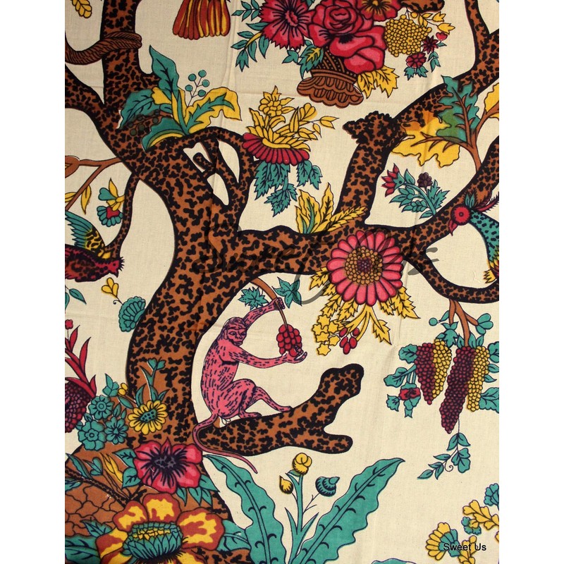 This ravishing wall hanging, tablecloth or bedspread is embellished with a vertical tree of life print on a gorgeous beige tan background. It is weaved with 100% cotton hand-loom fabric.