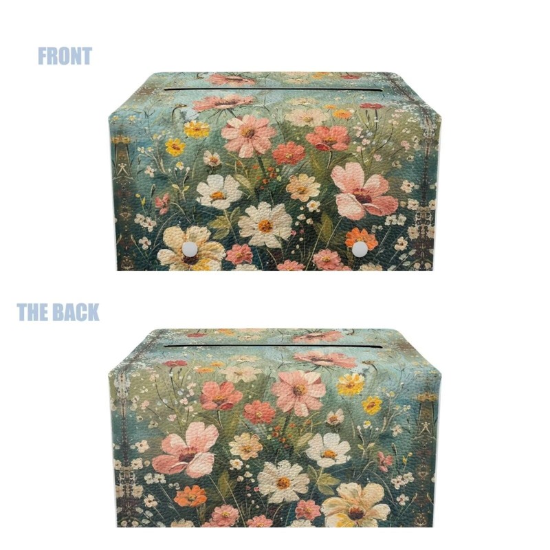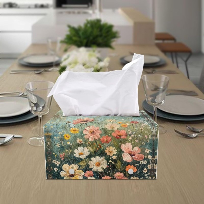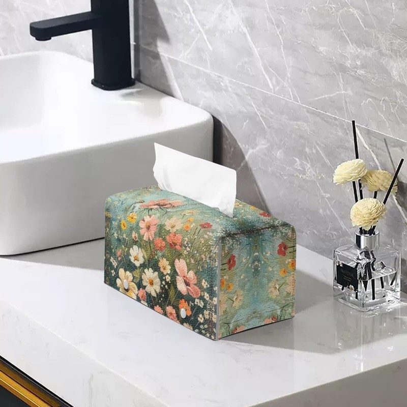 CREAMIC Floral Print Tissue Box Cover Rectangle Modern PU Leather Rectangular Tissue Box Waterproof Tissue Cover Tissue Box Holder Night Stands Bedroom Office Desk, CZA62