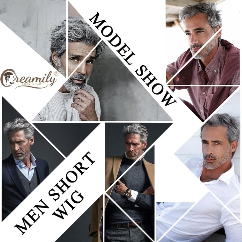 Creamily Wig for Men (E-Grey White Mix Black)
