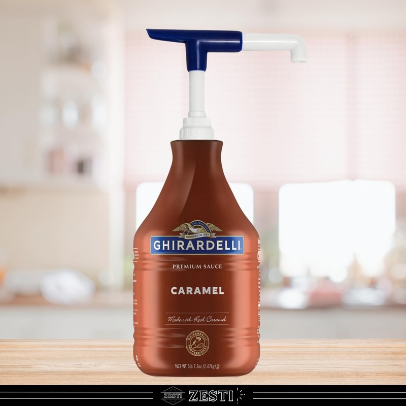 Creamy Caramel Sauce 87.3 oz with ZESTI Barista Spoon & Pump – Perfect for Desserts, Ice Cream, and Espresso Drinks – For Cafes and Home Use