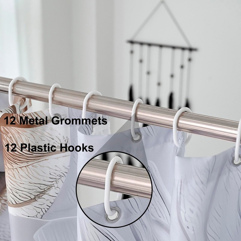 - Simple Installation: Our bath curtain comes with reinforced metal grommets that prevent tearing and ensure easy hanging, complemented by 12 durable plastic hooks for smooth gliding action on your shower rod