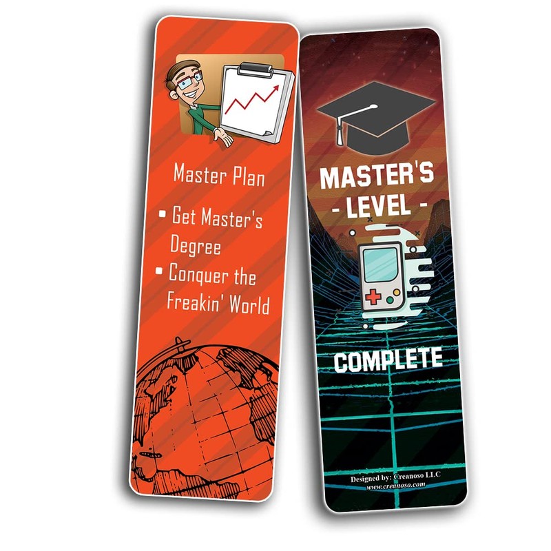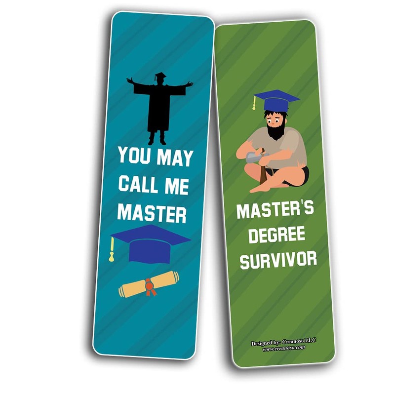 Creanoso Funny Master Degree Graduation Bookmarks (2-Sets X 6 Cards) – Daily Inspirational Card Set – Interesting Book Page Clippers – Great Gifts for Kids and Teens