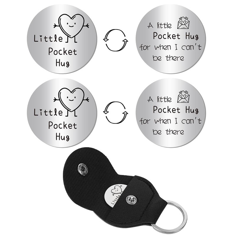 - [INSPIRATIONAL KEYCHAIN]: When someone needs a little reminder that they can do this no matter what, this wish pocket hug coin shows them that you're always there to support them and that you're thinking of them. Send a hug to a loved one with a little keepsake token that reminds you that you'll always have him/her with you no matter where you are.