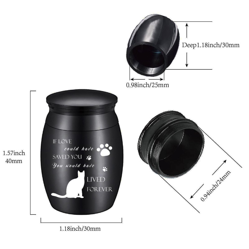 CREATCABIN Cat Urn Mini Heart Loved Forever Pet Ashes Small Keepsake Memorial Waterproof Stainless Steel Cremation Container Jar 30x40mm Black