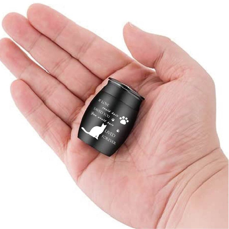 CREATCABIN Cat Urn Mini Heart Loved Forever Pet Ashes Small Keepsake Waterproof Stainless Steel Cremation Container Jar 1.18x1.57inch Black